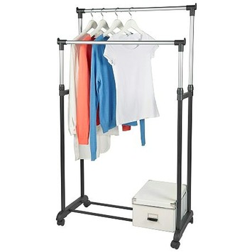 Uw kleding overzichtelijk opbergen? Het kan met het Kledingrek op wielen. Dit kledingrek is voorzien van een dubbele bar. Het alluminium frame zorgt ervoor dat het rek licht van gewicht is: 3,24kg om precies te zijn. Het kledingrek is in hoogte verstelbaar. De hoogte varieert van 100cm tot 170cm. De breedte van het Kledingrek op wielen is 80cm en de diepte is 43cm. Het rek is voorzien van 4 wielen die uitgevoerd zijn in nylon. Hierdoor kunt u het rek makkelijk verplaatsen. Alle onderdelen van het kledingrek worden geleverd in een afzonderlijke polyester zak. Kortom, hang uw kleding snel en eenvoudig op aan het Kledingrek op wielen.