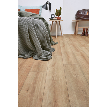 Mooie warme kleurstaal. Product is iets lichter dan op de foto, maar scheelt niet heel veel. Op de achterkant staat heel fijn voor welke ruimte het laminaat geschikt is.