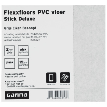 Met deze kleurstaal van de Flexxfloors Stick Deluxe PVC grijs eiken Bezaagd kun je thuis beoordelen of de vloer past bij je huis, inrichting en vloerwensen. De kleurstaal hoort bij de Flexxfloors Stick Deluxe PVC Vloerdeel Grijs Eiken (Artikelnr. 585627). Deze vloer is in elke ruimte binnenshuis te leggen en is ook geschikt voor de trap, in combinatie met Flexxstairs profielen. Kortom, het aanschaffen van deze vloer is niet alleen een stijlvolle, maar ook praktische keuze.