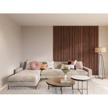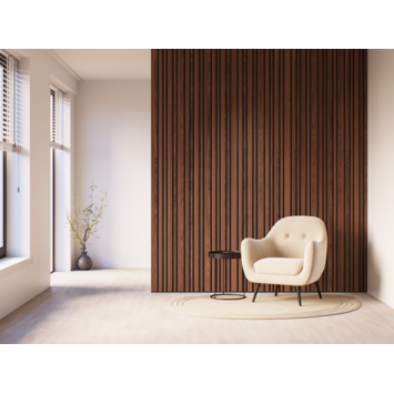 Kleurstaal lattenwand Decowall Acoustic Blend walnoot 30x25cm