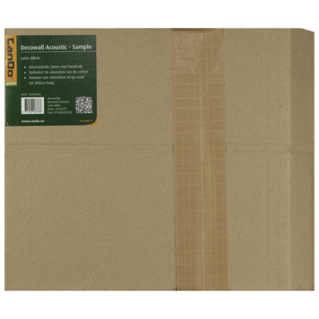 Met het kleurstaal van de lattenwand Decowall Acoustic lava eiken kan je thuis beoordelen of het wandpaneel past bij jouw huis en inrichting. Het kleurstaal hoort bij het paneel lattenwand 260x30cm (artikel 263635)