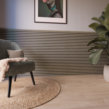 Kleurstaal lattenwand Decowall Acoustic vergrijsd eiken 18x30 cm