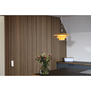 Met het kleurstaal van de lattenwand geolied eiken kan je thuis beoordelen of het wandpaneel past bij jouw huis en inrichting. Het kleurstaal hoort bij het paneel lattenwand 260x52,6 cm geolied eiken, dikte 22mmm (artikel 235459) en tegel 55,3x55,3cm (artikel 235336)