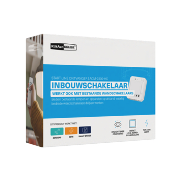 Met de KlikAanKlikUit ACM-2300-HC Ingebouwde Schakelaar kun jij lampen en andere apparaten draadloos in- en uitschakelen. Installeer de schakelaar in een plafonddoos om lampen tot 2300 Watt te bedienen. Combineer deze schakelaar met de bestaande wandschakelaar of 1 van de KlikAanKlikUit zenders voor de meest makkelijke bediening.