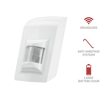De sensor detecteert bewegingen van ongewenste bezoekers in uw huis met een detectiehoek van 120 graden en een bereik tot 15 meter. In combinatie met de sirene wordt de status van de sensor continu gecontroleerd door de sirene zodat je huis altijd beveiligd is. De draadloze bewegingssensor is uitgerust met een Anti-sabotage-systeem. De sirene wordt geactiveerd als de sensor wordt verwijderd of geopend. Met de lange batterijduur en indicator voor batterij bijna leeg ben je verzekerd dat je systeem altijd werkt. Ook is de bewegingssensor voorzien van een infraroodsensor, zodat hij ook in het donker goed werkt.