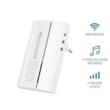 De zender kan een bewegingsmelder zijn, een afstandsbediening of een draadloze drukknop. Per zender kun je een aparte melodie selecteren, waardoor je weet of iemand op de drukknop drukt of wordt waargenomen door de bewegingsmelder. De ontvanger heeft een compact en strak ontwerp en past daardoor in elk interieur. Daarnaast is de deurbel uitgerust met een led-lampje dat 15 seconden knippert als de drukknop wordt geactiveerd; handig voor doven en slechthorenden. Je kunt deze set heel eenvoudig met extra draadloze deurbellen uitbreiden.