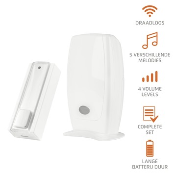 Je plaatst de batterijen in de gong (de ontvanger) en plakt de draadloze deurknop waar je hem wilt hebben. Neem de gong mee naar de tuin of een plaats waar veel geluid is (bijvoorbeeld door de wasmachine of muziek) en je hoort ook dáár, wanneer er wordt aangebeld.