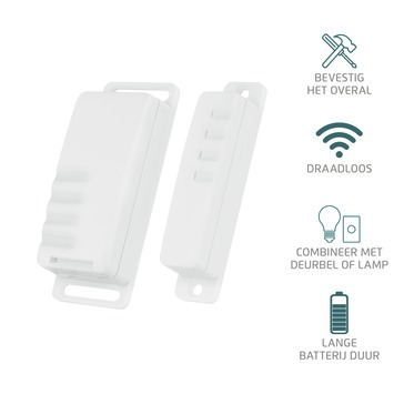 Voor ons kantoor heb ik een draadloos deurcontact gemonteerd samen met de draadloze deurbel. Omdat we in kantoor geen zicht hebben op de voordeur is dit een ideale oplossing. Mooi van Gamma