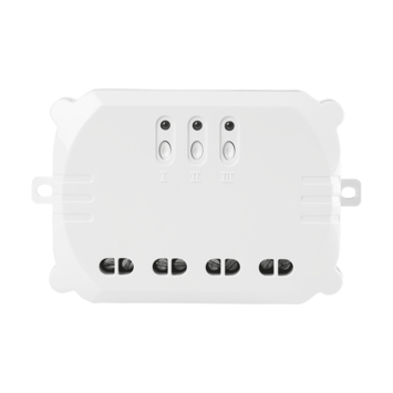 De KlikAanKlikUit Inbouwschakelaar 3-voudig ACM-3500 heeft 3 uitgangen die je afzonderlijk van elkaar of tegelijkertijd draadloos kunt aan- en uitschakelen.
