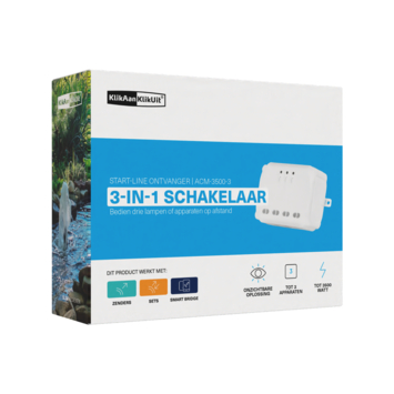Met 1 ontvanger kun je 3 drie lampen/apparaten draadloos aan/uitschakelen. Per uitgang kunt je maximaal 6 Klik Aan Klik Uit-zenders aanmelden om de aangesloten verlichting of apparatuur draadloos te bedienen met een afstandsbediening, draadloze wandschakelaar of draadloze bewegingsmelder. Het totale maximale vermogen van de drie uitgangen bedraagt 3500 Watt. Je kunt de ontvanger netjes wegwerken in een verlaagd plafond of in een kast/meubel. Als je deze ontvanger in de spatwaterdichte montagedoos OWH-002 plaatst, kun je het apparaat ook in vochtige ruimtes of buitenhuis gebruiken.