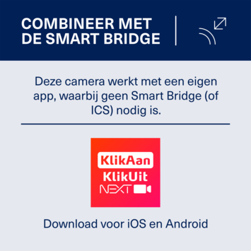 - Kijk eenvoudig live of opgenomen beelden op je smartphone/tablet via de gratis KlikAanKlikUit Next app (iOS en Android)