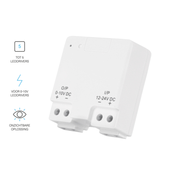 Functioneert goed, jammer dat het niet gecombineerd is met een aan/uit functie. En de externe voeding. Maar het is wel de enige betaalbare 0-10V dimmer.