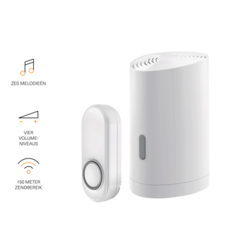 Haal meer uit je deurbel met deze draagbare draadloze deurbelset van KlikAanKlikUit. Plaats de deurbel op elke gewenste plek in huis, plak of schroef de drukknop eenvoudig naast de deur en kies uit een van de zes melodieën. Het is zelfs mogelijk om andere KlikAanKlikUit-zenders, zoals de bewegingssensor, te koppelen om je deurbel een waarschuwing te laten geven als er iemand ongevraagd de tuin in loopt.