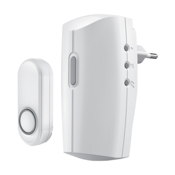 Haal meer uit je deurbel met deze plug-in draadloze deurbelset van KlikAanKlikUit. Plaats de deurbel in elk gewenst stopcontact in huis, plak of schroef de drukknop eenvoudig naast de deur en kies uit een van de zes melodieën. Het is zelfs mogelijk om andere KlikAanKlikUit-zenders, zoals de bewegingssensor, te koppelen om je deurbel een waarschuwing te laten geven als er iemand ongevraagd de tuin in loopt.