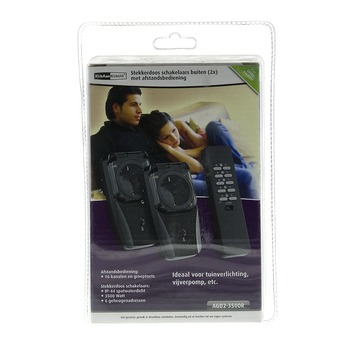 De set bestaat uit twee stopcontactschakelaars en een afstandsbediening.