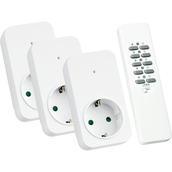 De KlikAanKlikUit-schakelset ACD3-1000R bestaat uit 3 stekkerdoosschakelaars die je heel eenvoudig in een stopcontact naar keuze plaatst. Hierop sluit je een lamp of apparaat aan met een maximaal wattage van 1000watt. Op deze manier kun je draadloos 3 lampen of apparaten aan- en uitschakelen. Met de meegeleverde afstandsbediening kunt je schakelaar draadloos bedienen daarnaast kan dat met nog 5 andere KlikAanKlikUit-zenders (nietmeegeleverd). Denk aan een draadloze wandschakelaar of bewegingsmelder. De afstandsbediening maakt het mogelijk in totaal 16 KlikAanKlikUit-ontvangers afzonderlijk van elkaar te bedienen. Met één druk op de G-knop schakel je alle ontvangers tegelijk aan of uit. Combineer deze KlikAanKlikUit-schakelset met andere producten uit de KlikAanKlikUit-serie die je bij GAMMA vindt. Installeren is heel eenvoudig, je hebt geen installateur nodig; plug and go.