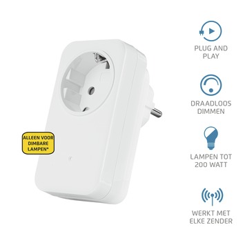 - Geschikt voor dimbare led-verlichting en dimbare spaarlampen (van 3 tot 24Watt) en alle overige dimbare verlichting (van 20 tot 200Watt).