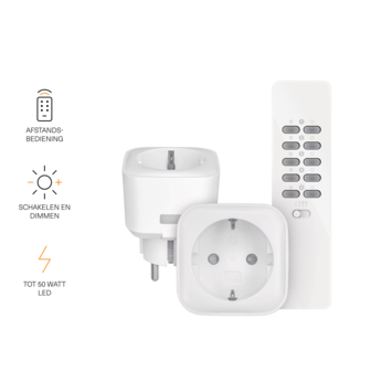 Plaats de stekkerdoosschakelaar in het stopcontact en sluit hier een dimbare lamp op aan. Met maximaal 6 Klik Aan Klik Uit-zenders kun je nu de verlichting bedienen. De KlikAanKlikUit KlikAanKlikUit Stopcontactdimmer 2 stuks met Afstandsbediening ACC-250R is geschikt voor het dimmen van dimbare led-verlichting en dimbare spaarlampen (van 3 tot 50watt) en alle overige dimbare verlichting (van 3 tot 250watt). De ontvanger is compact en past in vrijwel elk interieur. Deze KlikAanKlikUit stekkerdoos kun je natuurlijk combineren met andere KlikAanKlikUit-producten. In de verpakking vind je 2 dimmers.