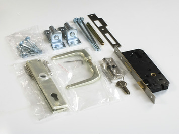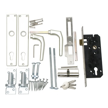 Het aluminium klinkstel compleet met cilinderslot en duimen is toepasbaar in stalen tuinframes voor het afsluiten van uw tuinpoort.