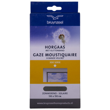De Bruynzeel zonwerende horgaas met klittenband 300 serie is een bijzonder gemakkelijke op maat te maken en monteren oplossing. Door middel van zelfklevend klittenband is het horgaas bijzonder eenvoudig te plaatsen en weer te verwijderen.