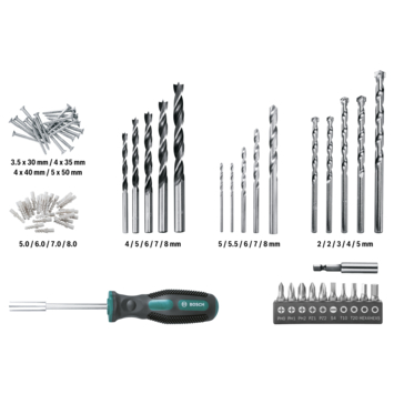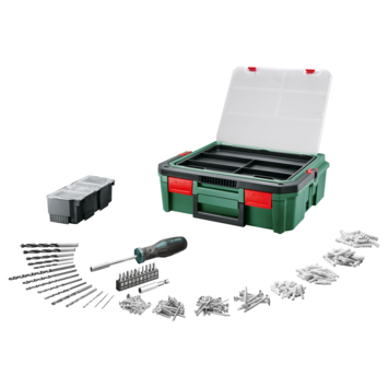 - Inclusief 182 delige accessoireset, dieptestop, additionele handgreep en stevige systembox