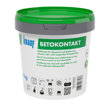 Zoek je een voorstrijkmiddel voor het bepleisteren van gipspleisters op moeilijk bepleisterbare ondergronden? Knauf Betokontakt 1 kg is precies wat je nodig hebt! Dit kant-en-klare voorstrijkmiddel is ideaal voor gebruik op minerale ondergronden zoals beton of gipspleister, die door hun dichte structuur en lage zuigvermogen moeilijk te bepleisteren zijn. Het aanbrengen is eenvoudig met een vachtroller, en na 6 uur is het oppervlak klaar om bepleisterd te worden. Met een hoge opbrengst kun je snel doorwerken en zorgen voor een stevige hechting. Beschikbaar in een handige 1 kg verpakking.