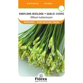 Knoflook-Bieslook (Allium tuberosum) Fjine delicate smaak. Niet meekoken. De Knoflook-Bieslook Zaadjes bloeien in Maart, April, Mei, Juni, Juli, Augustus. Dit is een meerjarige plant. Deze zaadjes kunnen geplant worden in Maart, April, Mei, Juni, Juli, Augustus en ontkiemen in 10-12 dagen.
