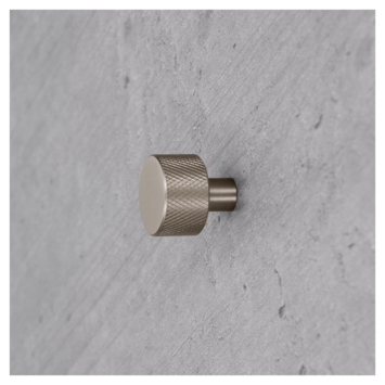 Moderne knop met ribbelstructuur, mooi in de keuken of kleine kastjes. Ook als haak te gebruiken.
