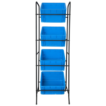 Dit metalen krattenrek in zwart biedt een stevige opbergoplossing met een draagvermogen van 35 kg. Met zijn afmetingen van 160x53x40 cm is het ideaal voor het organiseren van kratten en andere opbergmaterialen. Perfect voor gebruik in garages, bergingen of werkruimtes.