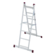 A-stand reformladder (foto 3): door de beide 6 treden ladders (de zijsteunen van de steiger) met elkaar te verbinden ontstaat een reformladder in A-stand. In deze opstelling kun je de ladder vrijstaand plaatsen wat bijvoorbeeld handig is voor het ophangen van een lamp aan het plafond of bij snoeiwerkzaamheden in de tuin. In A-stand is de hoogte van de ladder 160 cm zodat je een maximale werkhoogte kunt bereiken van 270 cm.