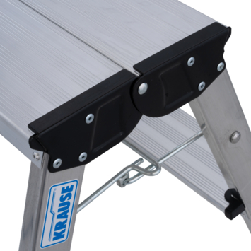 Ga je aan de slag met een kleine- of grote verfklus? Dan is dit Krause Opstapje met 2 treden een perfect aanvulling op je klus. Daarnaast is hij gemakkelijk op te bergen door hem in te klappen. Dit opstapje is heeft een enkele brede trede aan twee kanten en een breed platform met anti-slip. De werkhoogte die je ongeveer bereikt is zo'n 2 meter en het stavlak staat op 45 cm hoogte. Het maximale draaggewicht is 150kg.