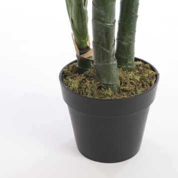 Klaar om zorgeloos te genieten? De kunstplanten zijn niet van echt te onderscheiden, maar hebben geen enkel onderhoud nodig. De Taro valt op door de grote, platte bladeren in een donkergroene kleur. De bladeren zijn uitgevoerd in verschillende maten en groentinten voor een natuurlijk effect. De plant is stevig verankerd in een zwarte kunststof pot, maar moet voor gebruik wel nog in model worden gebracht. Vuistregel: het blad moet je aankijken. Zet hem na het uitvouwen zo neer, of gebruik de kunststof pot als stevige basis voor een sierlijke overpot. Combineer hem met andere kunstbloemen en -planten uit de collectie en breng meer groen in huis. De Taro is ca. 120 cm hoog en heeft een diameter van 60 cm.