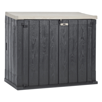 De Stora Way is een ruime, multifunctionele opbergbox van maar liefst 842 liter. Ideaal voor tuinkussens, gereedschap, zwembadspullen of zelfs je afvalcontainer. Alles netjes uit het zicht én beschermd. De box is gemaakt van uv-bestendig kunststof en is spatwaterdicht – dus een buitje is geen probleem. Je kunt 'm afsluiten met een hangslot (niet inbegrepen) en het monteren is zo gepiept. Bovendien is deze opberger volledig onderhoudsvrij.