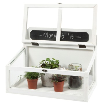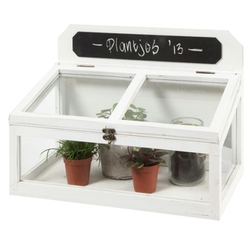 Kweekkas hout met krijtbord wit hoogte 27cm