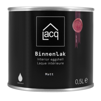Lacq binnenlak mat is een zeer dekkende watergedragen lak voor binnen in matte afwerking. De lak is makkelijk in gebruik, reukarm en sneldrogend. Goed reinigbaar, slijt- en krasvast, resistent tegen handvetten en zwakke chemicaliën. Lacq binnenlak is verkrijgbaar in bijna elke gewenste kleur.