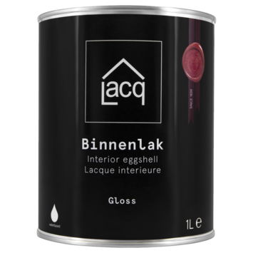 Lacq binnenlak glans is een zeer dekkende watergedragen lak voor binnen in glanzende afwerking. De lak is makkelijk in gebruik, reukarm en sneldrogend. Goed reinigbaar, slijt- en krasvast, resistent tegen handvetten en zwakke chemicaliën. Lacq binnenlak is verkrijgbaar in bijna elke gewenste kleur.