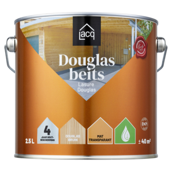 Lacq Douglas Beits bruin 2,5 liter is een watergedragen beschermingsmiddel speciaal geschikt voor douglas- en larikshout met een matte afwerking. Beschermt het hout tegen de weersinvloeden waardoor het hout lang zijn natuurlijke uitstraling behoudt. Watergedragen en opgebouwd uit plantaardige componenten. Dankzij de unieke samenstelling wordt er van binnenuit laagdikte opgebouwd. Deze vochtregulerende laag blijft flexibel zodat deze zelfs in belastende weersomstandigheden niet bladdert of scheurt en de kleur behoudt. Bescherm het hout tot wel 4 jaar!