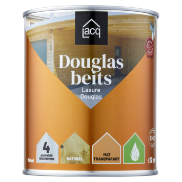 Lacq Douglas Beits naturel 750 ml is een watergedragen beschermingsmiddel speciaal geschikt voor douglas- en larikshout met een matte afwerking. Beschermt het hout tegen de weersinvloeden waardoor het hout lang zijn natuurlijke uitstraling behoudt. Watergedragen en opgebouwd uit plantaardige componenten. Dankzij de unieke samenstelling wordt er van binnenuit laagdikte opgebouwd. Deze vochtregulerende laag blijft flexibel zodat deze zelfs in belastende weersomstandigheden niet bladdert of scheurt en de kleur behoudt. Bescherm het hout tot wel 4 jaar!