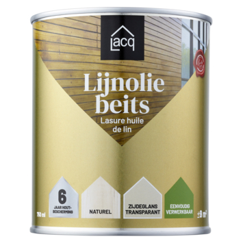 Lacq zuivere Lijnolie beits transparant naturel 750 ml is een authentiek lijnolie beschermingsmiddel voor alle houten ondergronden met een zijdeglans afwerking. Op ambachtelijke wijze bereid. De combinatie van houtolie en lijnolie zorgt voor een optimaal resultaat. Door deze unieke samenstelling van grondstoffen blijft het de beitslaag lang flexibel zodat deze niet scheurt op hout. Het voedt het hout van binnen uit en biedt langdurige bescherming tot wel 6 jaar!