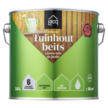 Lacq Tuinhout beits mat 2,5 liter is een watergedragen middel voor het beschermen van houten ondergronden, met een matte afwerking. Het is oplosmiddelarm en opgebouwd uit water en plantaardige oliën. Dankzij de unieke formule bouwt het zich van binnenuit op tot een transparante of dekkende laag op het hout. Deze laag is ademend en flexibel, waardoor deze zelfs in zware weersomstandigheden niet bladdert of scheurt. Het vergeelt niet en blijft kleurvast dankzij het krachtige UV-filter.