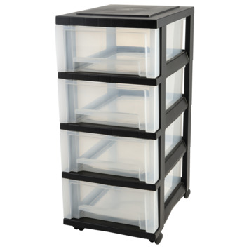 Dit ladesysteem van kunststof is de perfecte manier van opbergen. Met zijn 4 lades van elke 11 liter kan je er veel in kwijt. Het ladesysteem beschikt over 4 wielen, waardoor je hem makkelijk kan verplaatsen.