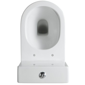 Op zoek een toilet dat past in jouw moderne badkamer? Ga dan voor staande wc rim-wall. Dit toilet bestaat uit een witte toiletpot en bijpassende toiletbak in wit porselein, een materiaal dat goed te onderhouden is. Deze wc heeft een dual flush-systeem, ofwel dubbele bedieningstoets, waarmee je kunt kiezen tussen een kleine of grote spoelbeurt. Dankzij het softclose-systeem valt de wc-deksel nooit te hard dicht. Dit toilet heeft geen spoelrand, wat de hygiëne bevordert en extra eenvoudig schoon te maken is. Kortom: dit strakke toilet is van alle gemakken voorzien. Deze staande wc heeft een PK aansluiting.