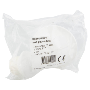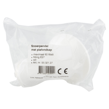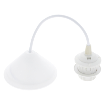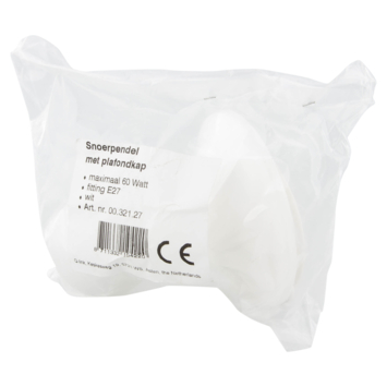 De witte lamppendel is een eenvoudige, maar degelijke lamppendel waarmee je met gemak een lamp aan het plafond hangt. Je kunt deze lamppendel combineren met een lamp met een lampfitting E27 en een maximaal voltage van 0,26V. Deze lamppendel is gemaakt van wit kunststof en heeft een beschermingsklasse IP20.