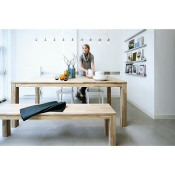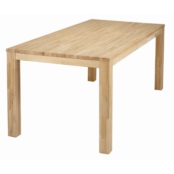 Eettafels gebruiken we niet alleen om aan te eten. We leven, werken en spelen aan tafel. Aan deze Largo tafel eiken 200x90cm is genoeg plek voor al die functies én voor familie en vrienden. Het blanke massieve eikenhout is helemaal van nu en geeft jouw woonsfeer een moderne uitstraling. Deze tafel heeft stevige, vierkante blokpoten van 8x8 cm en een dik blad van 26mm. Door toepassing van metalen hoekplaten is deze tafel duurzaam in gebruik. De hoogte van de tafel bedraagt 78 cm en de afstand tussen de vloer en de onderkant van de tafelregel bedraagt 68,5 cm, erg belangrijk wanneer je armleunstoelen hebt. De tafel is gemaakt van stroken verlijmd massief eikenhout (vingerlas) en wordt onbehandeld geleverd, je kunt er dus met gemak je eigen draai aan geven. Behandel de tafel met olie om kringen en vlekken te voorkomen. In de webshop zijn meerdere kleuren olie te bestellen, je vindt ze onder de categorie: accessoires – overig. Deze tafel wordt geleverd met een duidelijke montage-instructie (exclusief stoelen), zodat je hem eenvoudig zelf in elkaar kunt zetten. Kortom: een moderne en stevige eikenhouten tafel die in geen enkel interieur zou misstaan.