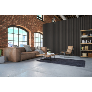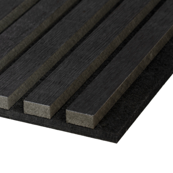 Met de lattenwand creeër je eenvoudig een scandinavisch stijlvol design in jouw huis. Met behulp van de kant en klare panelen kun je in een korte tijd een wand dichtzetten in woonkamer, keuken of slaapkamer en krijg je een warme uitstraling. Het paneel is 244 cm lang en 60,5 cm breed. De vilten achterwand, die gemaakt is van duurzame materialen zoals PET flessen, is zodanig afgewerkt dat er direct met een nieuw paneel verder gewerkt kan worden en de juiste afstand tussen de latten behouden blijft. Op het vilt zitten zwart gekleurde MDF latten die zijn voorzien van echt hout fineer. Iedere afzonderlijke lat is dus uniek. De lattenwand is in meerdere decoren beschikbaar.