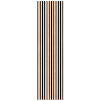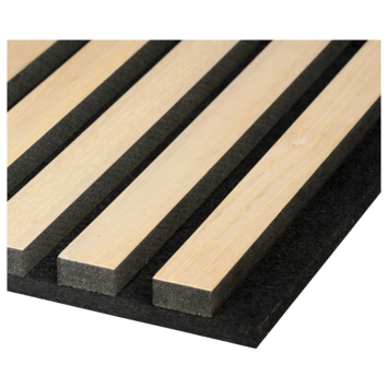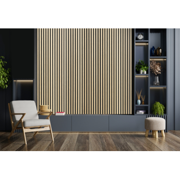 Met de lattenwand creeër je eenvoudig een scandinavisch stijlvol design in jouw huis. Met behulp van de kant en klare panelen kun je in een korte tijd een wand dichtzetten in woonkamer, keuken of slaapkamer en krijg je een warme uitstraling. Het paneel is 300 cm lang en 60,5 cm breed. De vilten achterwand, die gemaakt is van duurzame materialen zoals PET flessen, is zodanig afgewerkt dat er direct met een nieuw paneel verder gewerkt kan worden en de juiste afstand tussen de latten behouden blijft. Op het vilt zitten zwart gekleurde MDF latten die zijn voorzien van echt hout fineer. Iedere afzonderlijke lat is dus uniek. De lattenwand is in meerdere decoren beschikbaar. Het is belangrijk om bij het monteren van de panelen 2mm afstand te houden tussen de verschillende panelen. De vilten onderrug kan namelijk vanwege temperatuurverschillen lichtelijk uitzetten.