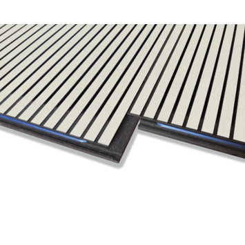 Avanti Acoustic combineert modern lattenwand interieurdesign met een oplossing voor de akoestiek. De panelen hebben een basis van 10 mm vochtwerend HDF en een hoogwaardig melamine oppervlak. Met een klikverbinding aan vier zijden worden ze naadloos tegen de wand of plafond gemonteerd met clips op latten. Voor geluidsdemping wordt tussen het latwerk de 18mm dikke Avanti Absorber isolatieplaat (artikel 230113) geplaatst i.c.m. het Avanti Acoustic isolatie doek (artikel 230114).