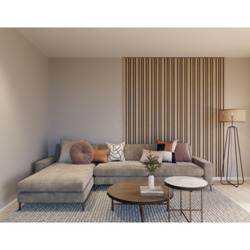 Ontdek Decowall Acoustic Blend: de speelse lattenwand met akoestische eigenschappen. Met zijn diverse breedtes van de latten transformeert Decowall Acoustic Blend elke muur tot een luxueuze blikvanger die direct de aandacht trekt. Of je nu een Scandinavisch, modern, klassiek of Japandi interieur hebt, deze wandbekleding past naadloos in elke stijl en verrijkt je ruimte.