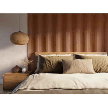 Met het kleurstaal van de lattenwand Decowall terra (artikel 347829) kan je thuis beoordelen of het wandpaneel past bij jouw huis en inrichting