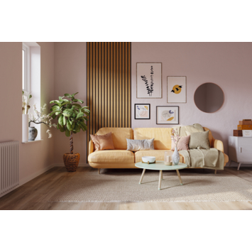 Met het kleurstaal van de lattenwand Decowall brons eiken (artikel 348335) kan je thuis beoordelen of het wandpaneel past bij jouw huis en inrichting